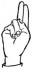 На ћирилици написано ПРЕДРАГ ЈОВЕЉИЋ састоји се из 14 слова [?]. Исписано ћириличном једноручном азбуком за глувонеме: